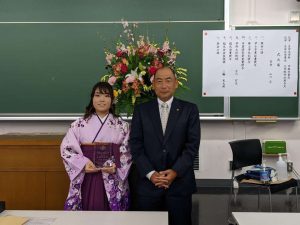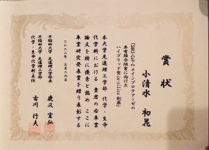 小清水初花(B4)が優れた卒業研究発表に贈られる卒業研究発表賞を受賞しました。