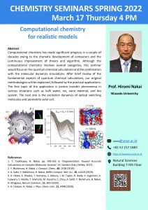 Chemistry for Realistic Models”の講演を行います。