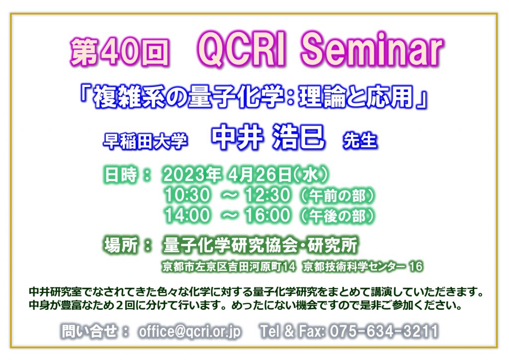 中井教授が第40回QCRIセミナーで招待講演を行います。