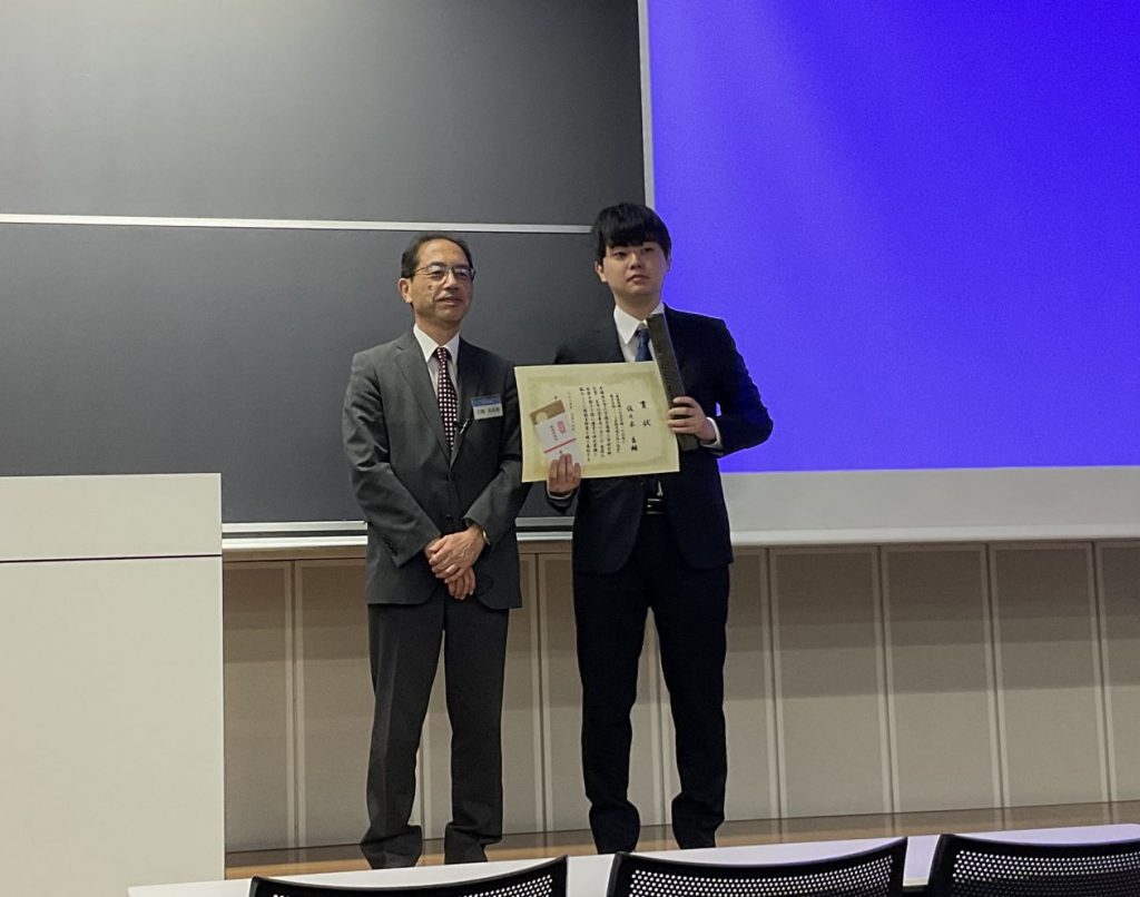 佐々木良輔(M2)が優れた修士論文に贈られる関根吉郎賞を受賞しました