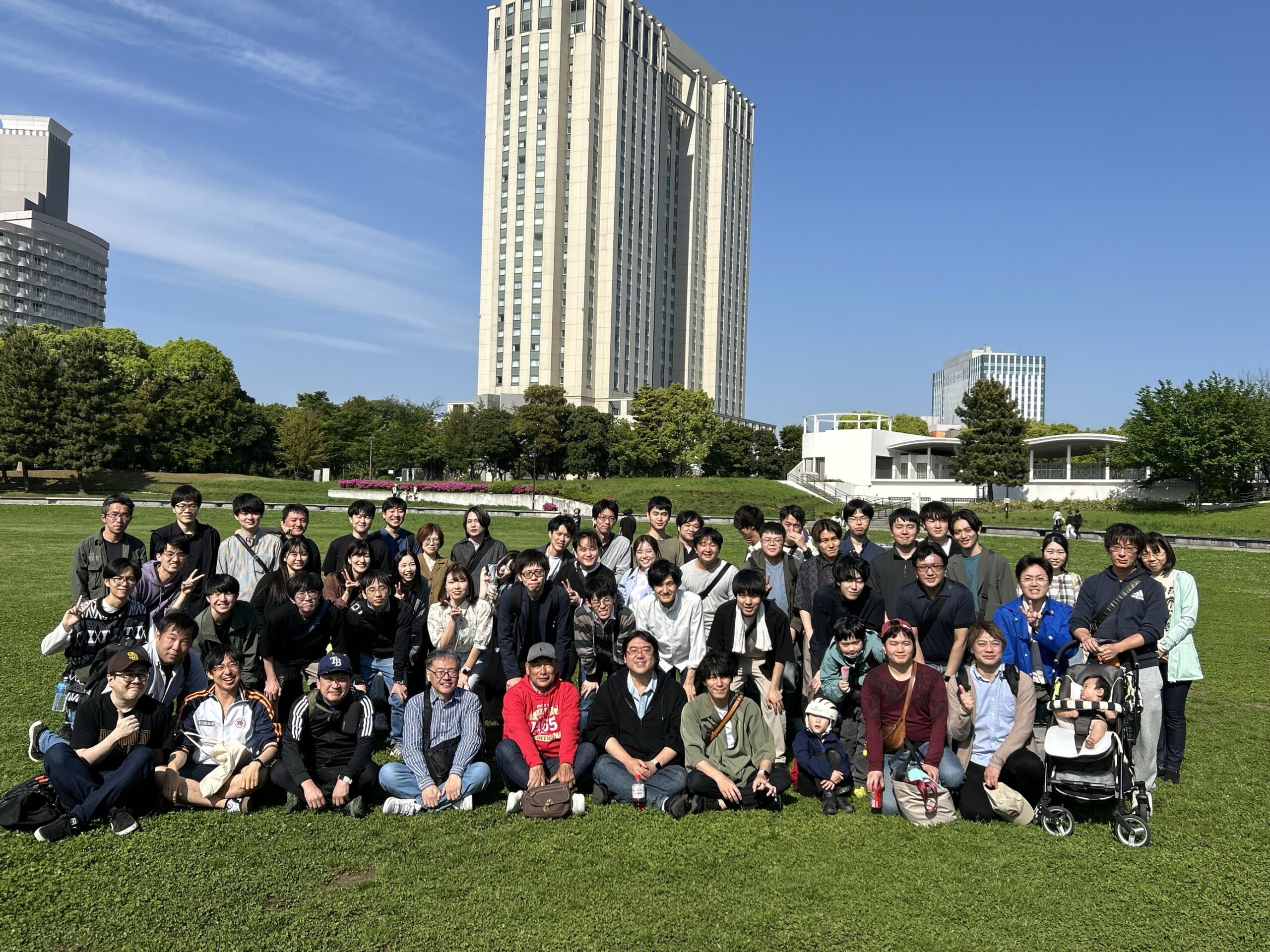 潮風公園にて、快晴の空の下、OB・OGおよび現役メンバーを含む